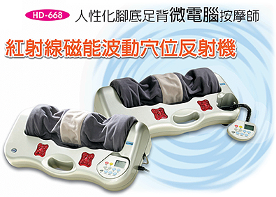 | 內建二十分鐘按摩方式,結合了穴位、放鬆、反射的三種程式,最適合忙碌的現代人及家中長者使用。 |